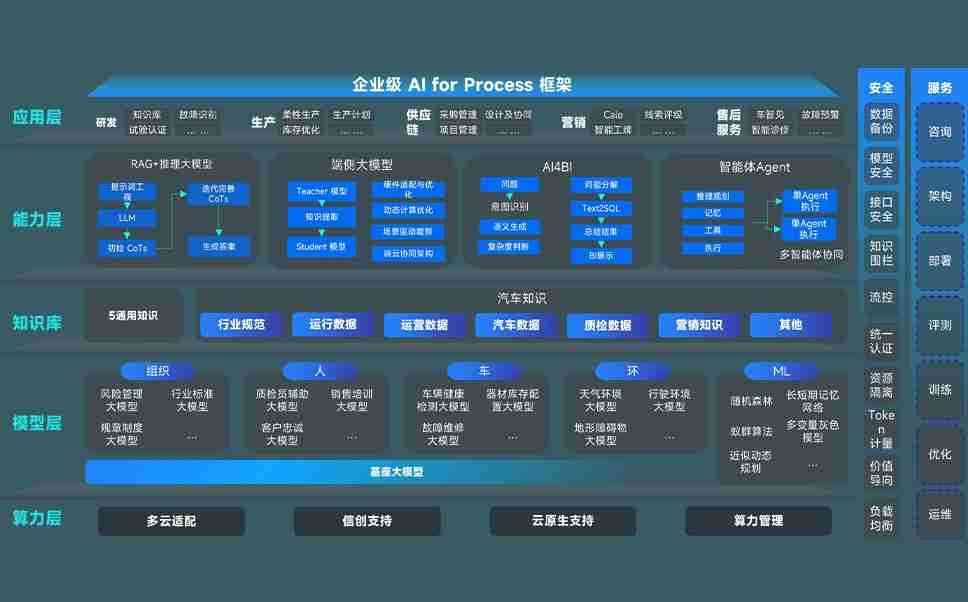 AG尊龙凯时问学智车解决方案是一套基于AI技术的汽车行业智能化系统,,,,覆盖从底层算力到顶层AI应用的全栈方案。。。。方案由算力层、、模型层和应用层组成:算力层,,,方案支持多种一体机配置,,具备云端灵活部署、、多云适配以及动态优化计算资源的能力;模型层,,AG尊龙凯时问学平台版提供了企业级AI应用一站式构建与管理平台,,,支持基于后训练强化技术的汽车企业专属模型的训练、、评测和运营;应用层,,AG尊龙凯时问学DeepSeek版提供包括超级员工、、智能招采、、、、智能营销、、、、智能客服、、、AI for BI等一系列解决方案,,,,可助力汽车行业实现数字化转型,,,,让管理更智能、、响应更敏捷。。。。